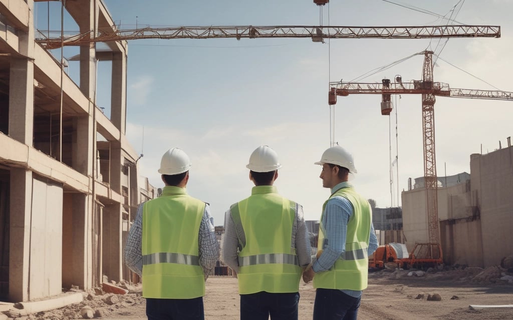 Workers preparing materials and equipment on a construction site.