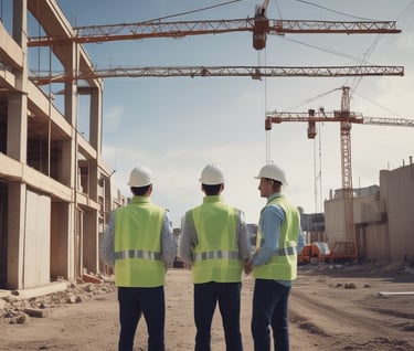 Construction team executing building tasks according to schedule.